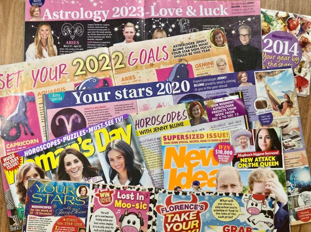 I offer detailed personal astrology readings, plus write weekly forecasts for Woman’s Day and New Idea magazines. Call or text 0411 631940 to book a reading (from $85) or check out your 2024 star sign forecast here