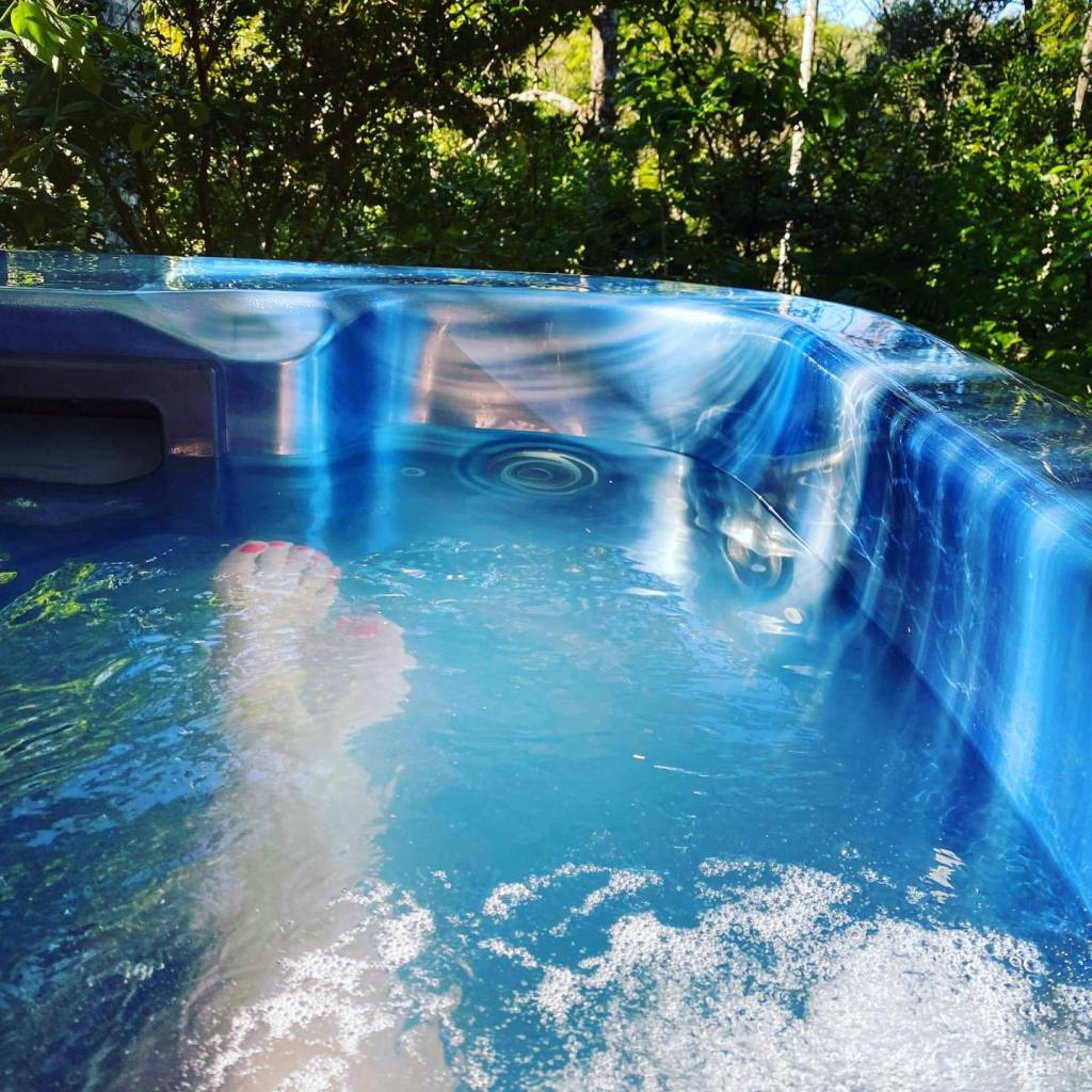 Retreat features: rainforest walks, magnesium spa, fresh spring water, showers and baths, fire pit, indoor fireplace, yoga studio, various indoor and outdoor lounging areas.